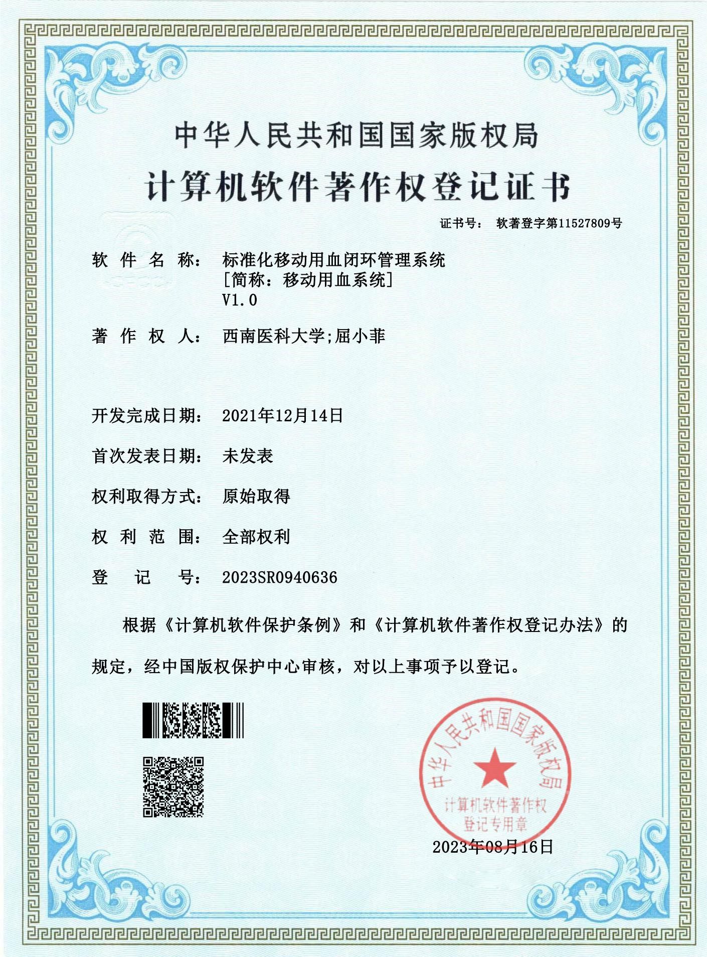 伟德国际bevictor19462021级信息管理与信息系统专业本科生屈小菲开发的软件《标准化移动用血闭环管理系统》(简称:移动用血系统)成功申请软著。该系统的应用层基于Android原生开发、控制层和数据访问层利用PHP编写。系统的数据库与医院数据库之间进行无缝连接,实现了信息资源共享。