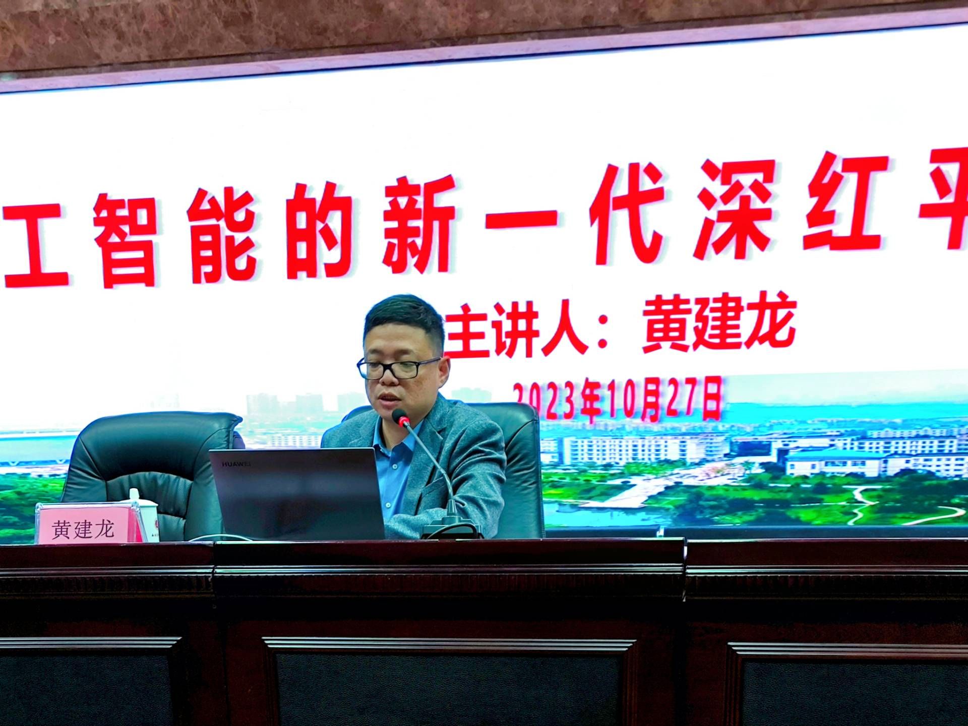 黄建龙研究员的学术报告主要从“人工智能应用发展介绍”、“深红平台介绍以及理论介绍”、“深红操作方法演示”、“深红发展与未来”四个部分向同学们进行了分享。黄建龙研究员从人工智能发展史讲起,利用数学函数与模型深入浅出地讲解原理,利用形象生动的动画示范应用实例,引领同学们的思维逐步走近人工智能,感受人工智能技术所带来的便利。报告结束后,与会同学积极提问,与黄建龙研究员展开了问答和互动。