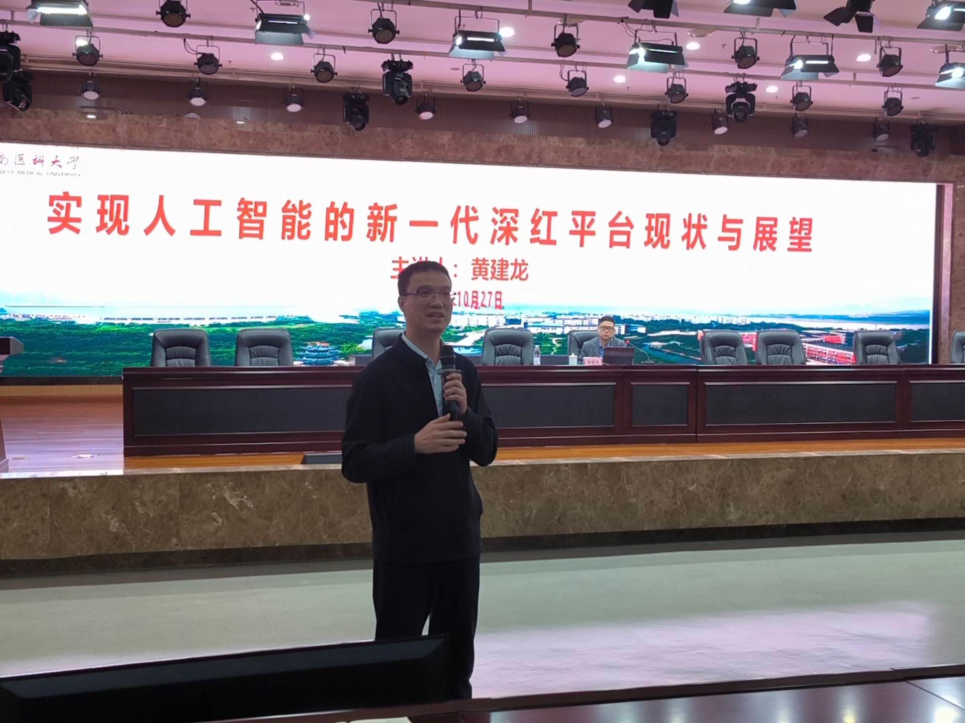 10月27日晚7点,由伟德源自英国始于1946科技处主办,伟德国际bevictor1946承办中国科学院客座研究员黄建龙学术报告会在公司第一学术报告厅成功举办。本次报告会的主题为“实现人工智能的新一代深红平台现状和展望”,旨在提高全校师生对人工智能领域的认识与理解,通过与人工智能方面的专家互动交流来激发员工对人工智能领域的兴趣与热情,从而启发更高的个人学术目标。本次学术报告会由伟德国际bevictor1946副经理黄志伟主持。