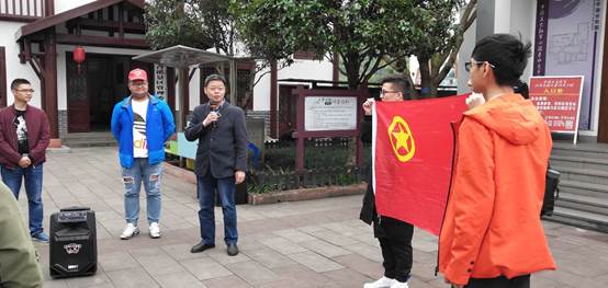 午饭过后,在纪念馆门前为班内最后一名入团的团员郑鸿卿同学举办了入团仪式,在团旗下,由团支书确太降初同学为他亲自戴上了一枚团徽,宣布他正式成为一名光荣的共青团员。接着由学院团委副书记蒋雨芩学姐、辅导员万老师、公司党总支书记杨书记分别为今天的活动进行了总结。于3点30分离开古镇。