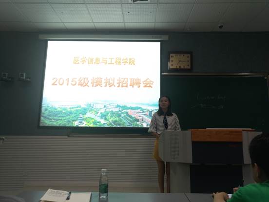 会上,6位2015级同学就预设的岗位进行模拟招聘面试,包括5分钟自我介绍和回答专家提问,最后杨富华、尹德辉对此次面试做点评,一方面对同学们的表现表示肯定,同时也指出此次模拟招聘会上出现的问题和改进的方向,希望同学们吸取经验、克服不足,为将来更好的职业发展打下坚实的基础。