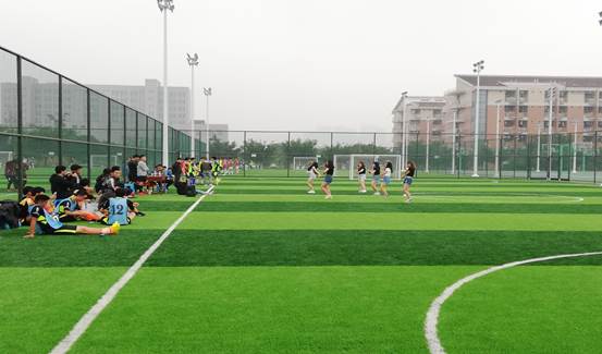 今日的天气并不像往日那样阳光明媚而是乌云密布甚至带着些蒙蒙细雨,但赛场上运动健儿们的激情却依旧不减当初,他们尽情的奔跑,挥洒着汗水,每个人都全身心的投入到比赛当中,场下的观众也为球员们呐喊助威。随着比赛如火如荼的进行,很快,信工FC队踢进了本场的第一颗球,这颗球将比赛推向了高潮,随着时间流逝,上半场就在这欢呼雀跃声中结束了,然后拉拉队们献上热舞,活跃气氛,为球员们鼓气。