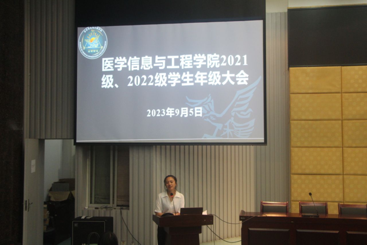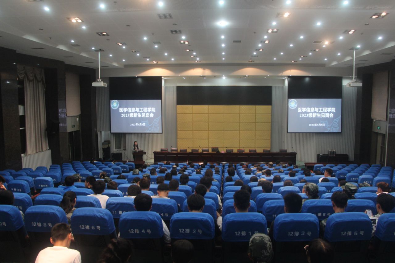 2023年9月5日晚8点,伟德国际bevictor1946在城北校区第二学术报告厅举办了2023级新生见面会以及新学期年级大会,全体在校员工均参加了会议,会议由员工科副科长刘梦萝主持。