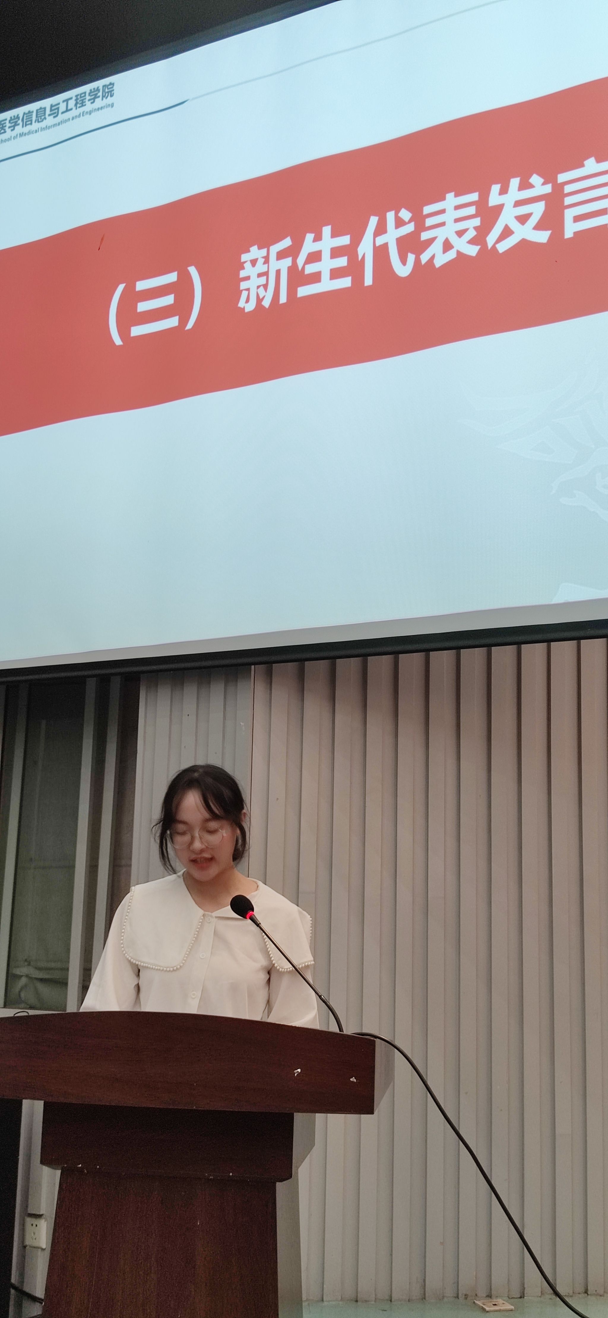 新生胡栋楸同学代表2023级新生发言,表达了自己对于未来生活的期望以及规划,向学院表示了积极上进、锐意进取的态度。老生代表叶柯菡同学分享了作为前辈的经验,鼓励学弟学妹们敢于展示自我、踔厉奋发,为实现理想抱负为之奋斗。
