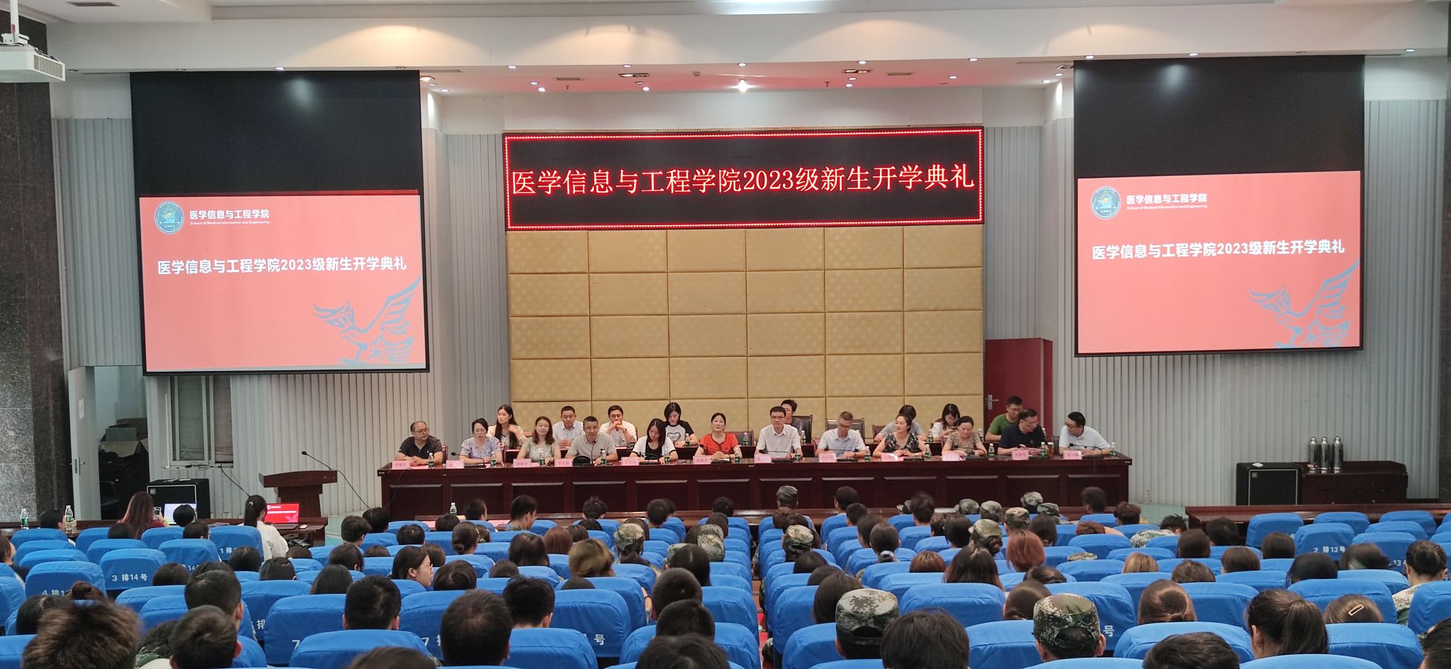 2023年9月17日,伟德国际bevictor1946在城北校区第二学术报告厅举行2023级新生开学典礼。医学信息与工程公司党委书记杨继宏、经理罗亚梅、副书记刘玉清、副经理黄志伟、各教研室主任、各行政科室工作人员以及2023级全体新生出席此次典礼。