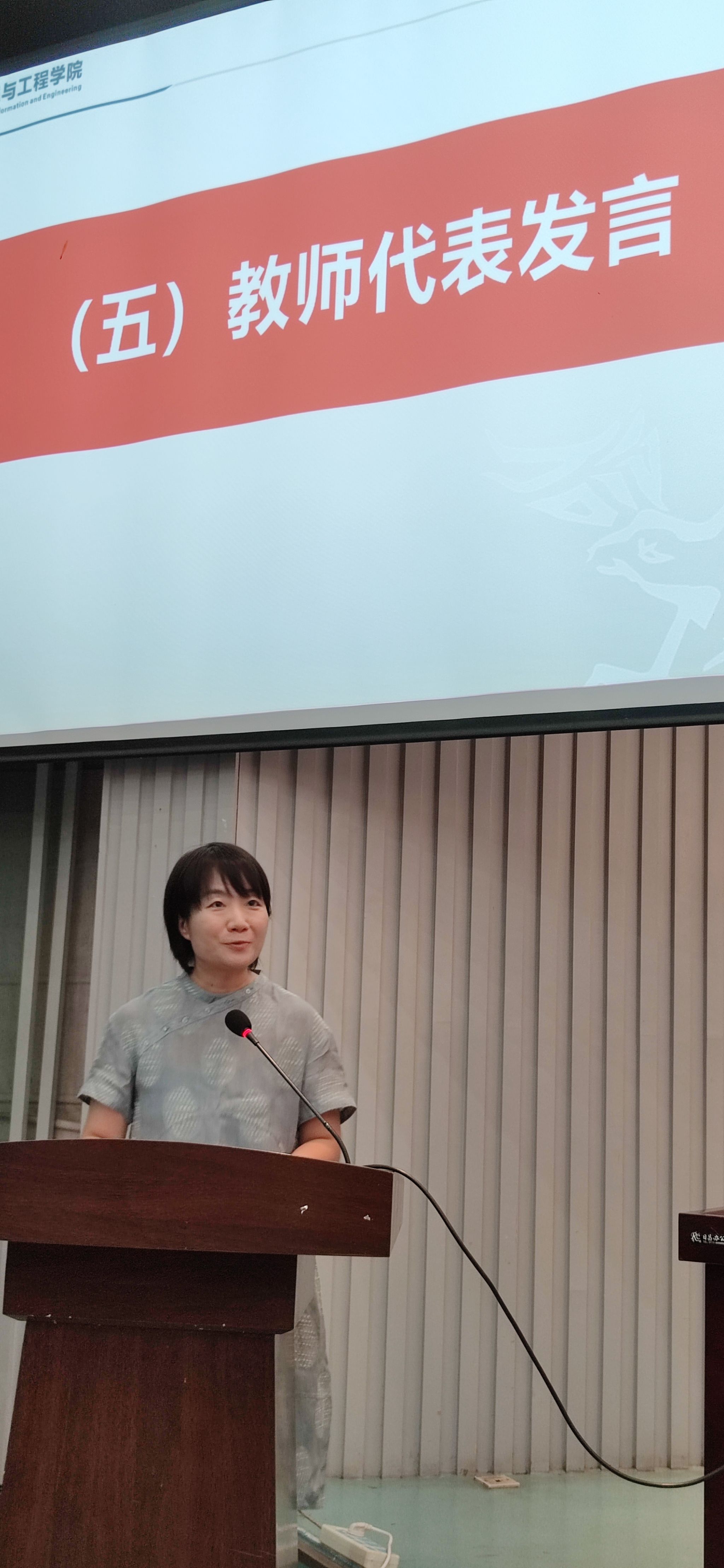 教师代表邓欢老师上台发言,她告诉同学们,大学正是“天时、地利、人和”的顶峰时期,要珍惜、利用好大学的时间。此外邓欢老师讲述了几位优秀员工的成功事迹,以此激励在座的同学们努力学习。