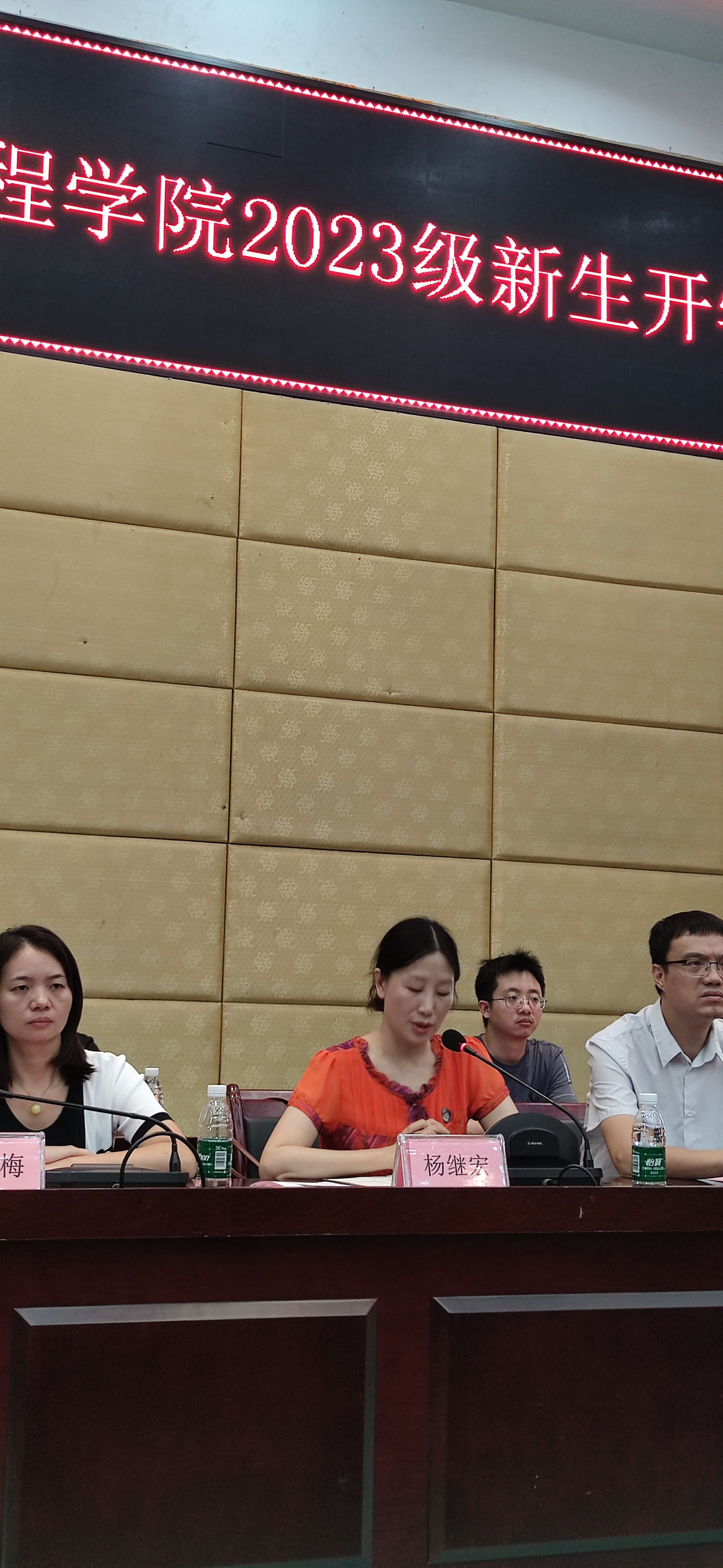 典礼伊始,全体起立,奏唱国歌。随后,杨继宏向新生致欢迎辞,表达了对新生们热烈的欢迎,要求新生做好大学四年的职业发展规划,向新生讲述了团结的重要性,要“心往一处想,劲往一处使”,最终形成团队合力。