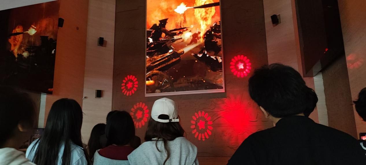在讲解员的带领下,同学们依次参观了国家历史文化名城泸州展览馆、中国蒋兆和艺术馆,并自行参观了泸州历史文物陈列馆。其中,在讲解中国蒋兆和艺术馆时,《流民图》的出现吸引着同学们集体的目光,它的篇幅巨大,虽没有直接出现侵略者,却反映了一百余位无家可归者垂死挣扎的痛苦情状,站在画前,同学们仿佛身临其境,置身其中的共鸣,给同学们带来了视觉盛宴的震撼和心灵的反思。
