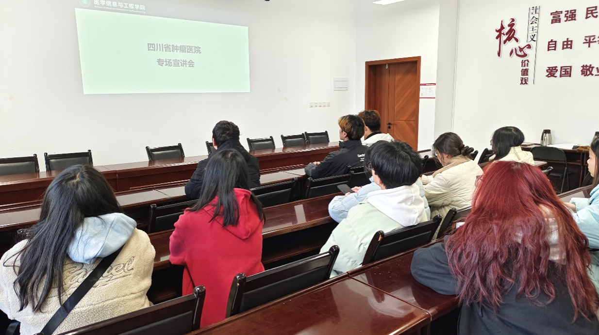 为加强校企合作与交流,全面做好员工实习就业服务工作,伟德国际bevictor1946邀请四川省肿瘤医院到公司进行宣讲。2024年4月16日,四川省肿瘤医院专场宣讲会在文渊楼325举办,公司部分员工参加了本次宣讲会。