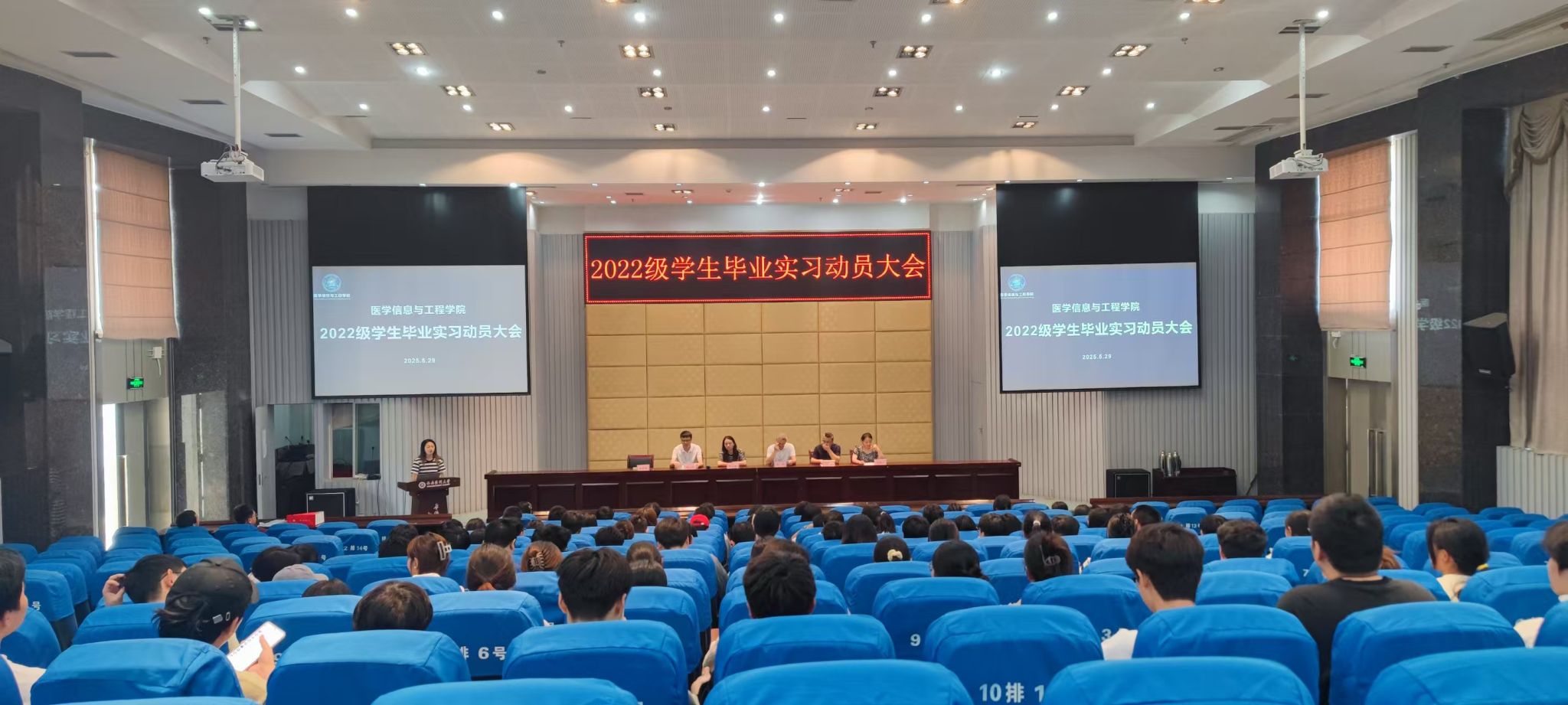 2025年5月29日中午,伟德国际bevictor1946在城北校区第二学术报告厅召开2022级员工毕业实习动员大会。公司党委书记何学、经理罗亚梅、党委副书记刘玉清、副经理黄志伟、科教科科长康晓宇、员工科副科长刘梦萝以及全体大三员工参加。