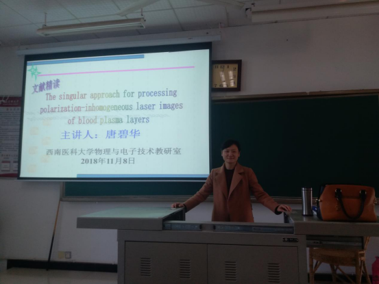公司副经理罗亚梅及师生参加此次活动。物理与电子技术教研室唐碧华老师,首先对自己在清华大学的学习情况进行了汇报,然后对“The singular approach for processing”文献,从研究的目标及解决问题的方法等进行深刻的分析讲解。