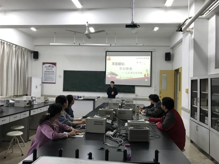 根据“不忘初心、牢记使命”主题教育的总体安排,物理与医学工程党支部书记贺兵同志于10月22日上午为支部党员同志讲了专题党课。