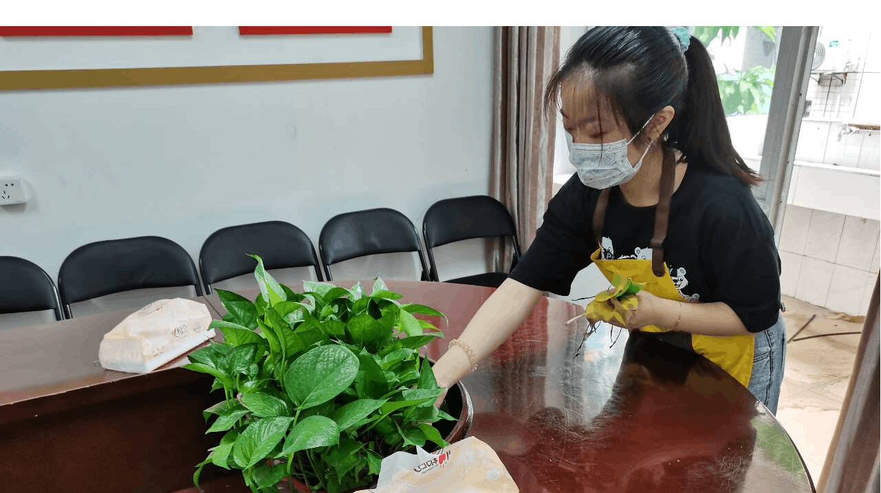 此次劳动教育活动的内容包括清扫地板、擦拭桌面、养护绿植等内容。经过10名“小蜜蜂”约一小时后的辛勤劳动,学院行政区域干净如新,物品摆放整齐划一。