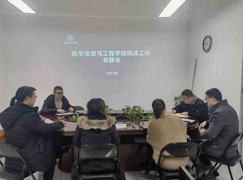 2021年4月16日,殊景楼208会议室,医学信息与工程公司党政班子召开学院统战工作的专题部署会。