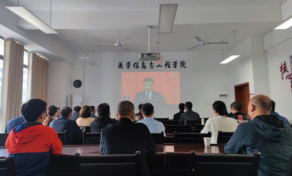 2022年10月16日,医学信息与工程公司党总支组织全院师生收看了中国共产党第二十次全国代表大会开幕会。学院设教师分会场、员工代表分会场,还有更多的同学以寝室为单位收看开幕会盛况。