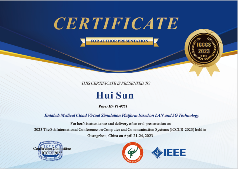 近日,伟德国际bevictor19462020级生物医学工程专业本科生孙珲作为第一作者,学术经理娄岩教授为通讯作者的论文“Medical Cloud Virtual Simulation Platform based on LAN and 5G Technology”被第8届IEEE ICCCS(2023 The 8th International Conference on Computer and Communication Systems)国际会议录用,该会议连续8年列入IEEE会议官方列表会议,录用的文章将出版到IEEE会议论文集,收录至IEEE数据库,入库IEEE Xplore,并被EI核心及Scopus等知名数据库检索。