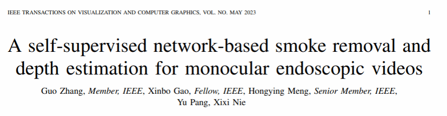 近日,公司张果博士以第一作者在IEEE Transactions on Visualization and Computer Graphics上发表论文《A self-supervised network-based depth estimation and smoke removal for monocular endoscopic videos》。 IEEE Transactions on Visualization and Computer Graphics(TVCG)是计算机图形学和可视化领域的国际权威顶级期刊,研究领域包括计算机图形学、可视化、虚拟现实(VR)、增强现实(AR)和人机交互等。被中国计算机学会(CCF)列为A类国际学术刊物(JCR一区和中科院SCI一区Top,影响因子5.2)。TVCG以高标准和严格的同行评审过程而闻名,对于可视化和计算机图形学领域的学术研究具有重要的地位和贡献。