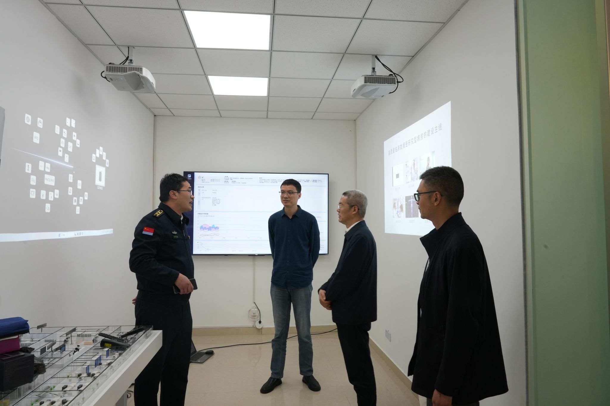 在上海联影医疗科技股份有限公司,何学一行详细了解了该公司的产品和技术,并就医疗影像设备的研发、应用等方面进行了交流。同时,双方就如何进一步加强校企合作、提升协同育人质量,推动人工智能在医疗领域的应用深入探讨。