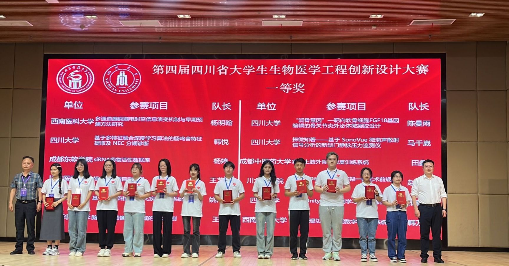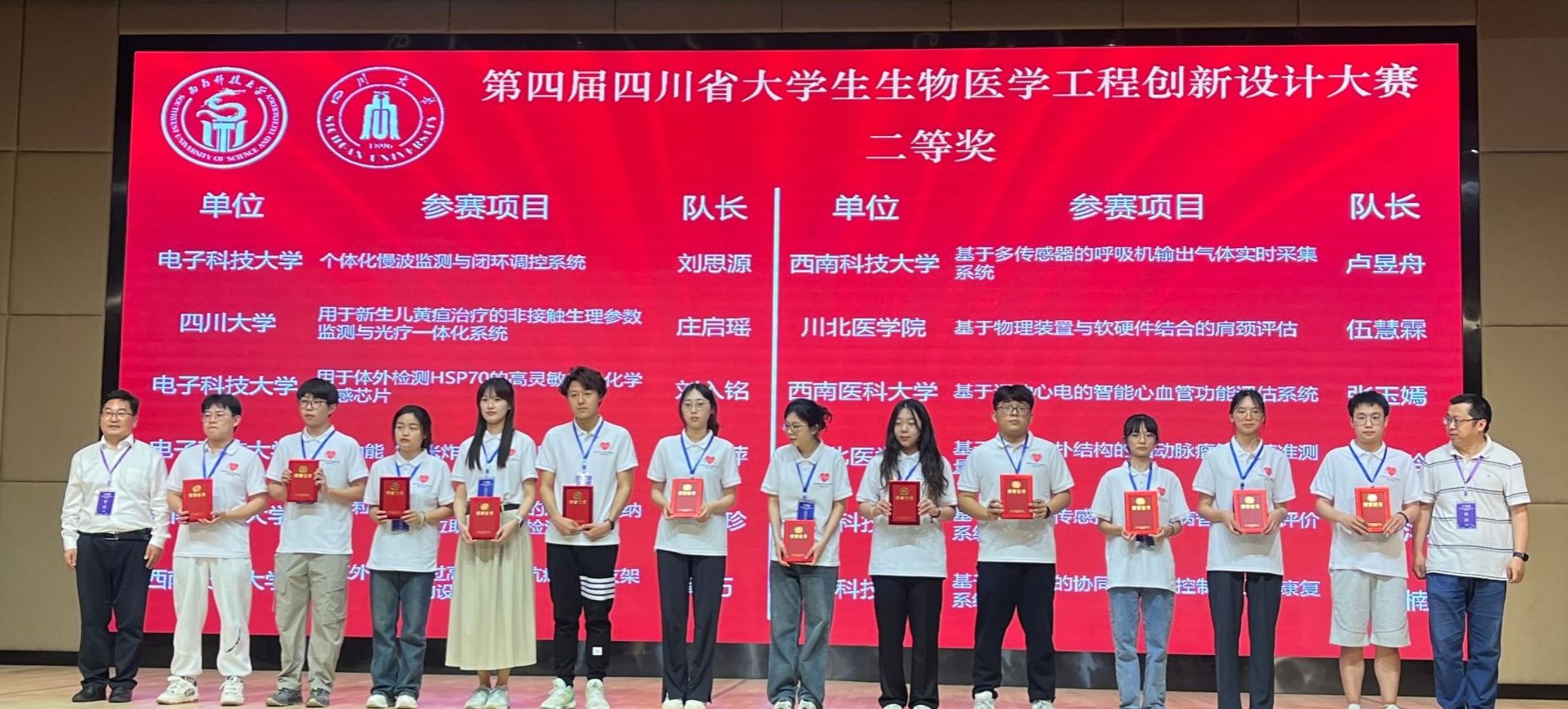 经过激烈的竞争和严格的评审,2022级生物医学工程杨明翰(队长)、许新洳、张艺平、贾敏、张玉嫣组成的代表队,最终从四川省12所高校265支队伍中脱颖而出,荣获四川省总决赛一等奖,教师钟丽莎获优秀指导老师奖。2023级生物医学工程张玉嫣(队长)、刘佳、张艺平、胡栋楸、郭浩然组成的代表队,指导教师钟丽莎、黄志伟,荣获四川省总决赛二等奖。