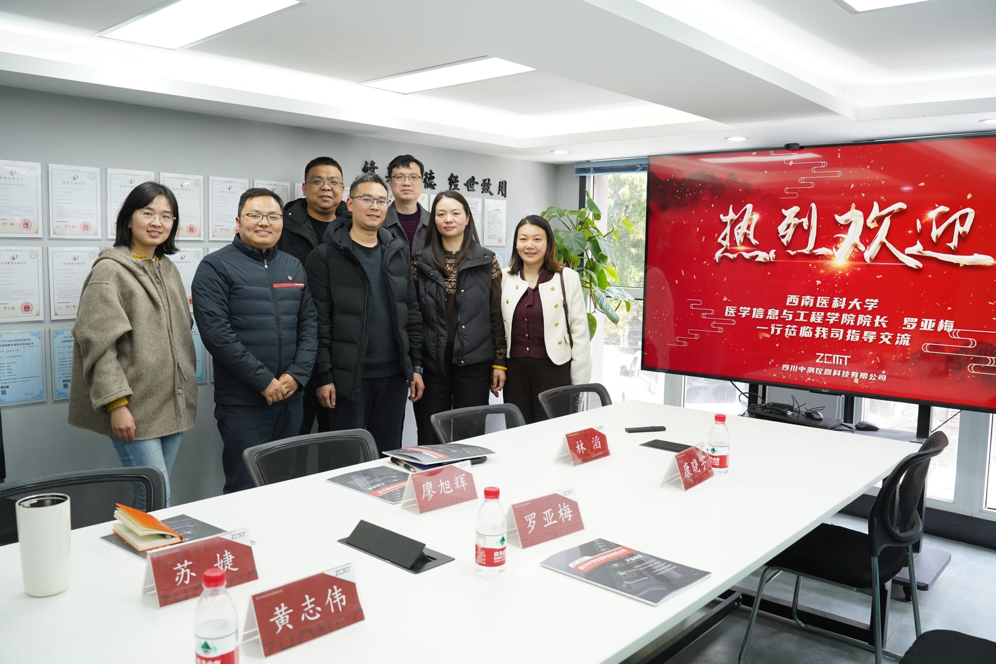 随后,学院团队前往四川中测仪器科技有限公司,调研高端医疗设备检测与认证需求。黄志伟副经理与企业技术骨干就“智能检测设备研发”“生物医学信号标准制定”等议题展开对话。双方达成初步共识,建立实习实训基地,提升员工解决复杂工程问题的能力。