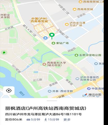 麗枫酒店(泸州高铁站西南商贸城店),酒店位置示意如图所示。(从学校北门步行15分钟到决赛场地),食宿自理。