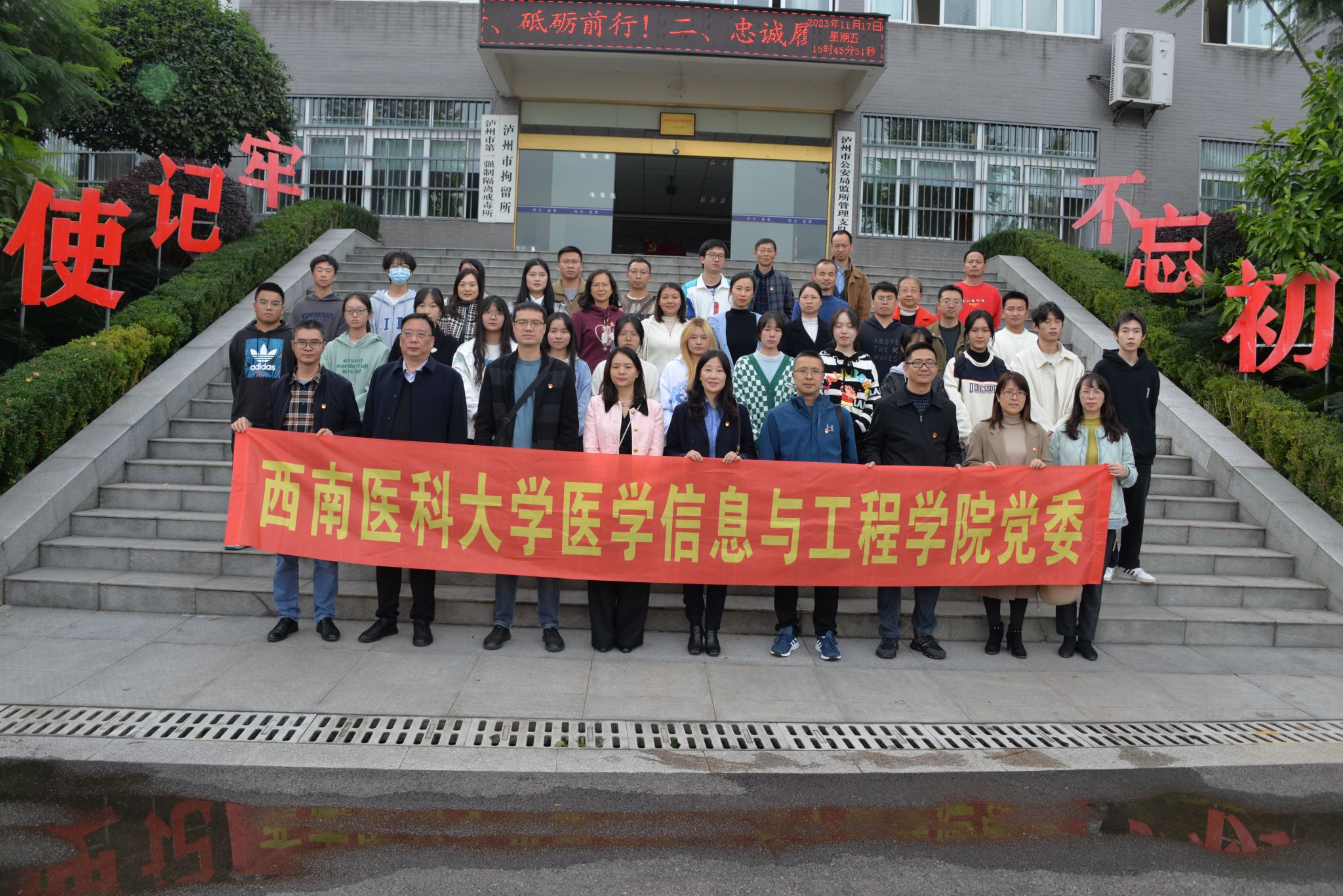 为学习贯彻党的二十大精神,扎实推进学习贯彻习近平新时代中国特色社会主义思想主题教育取得实效,纵深推进全面从严治党,切实提高党员和师生的遵法守法意识,医学信息与工程公司党委开展“清朗信工”系列活动。11月17日,医学信息与工程公司党委组织全体党员、教师、员工代表赴泸州市看守所、泸州市拘留所开展警示教育。这也是开展的学院统战主题教育。