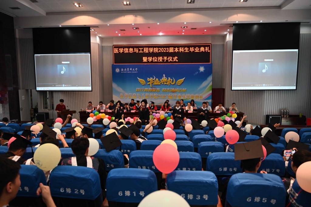 医学信息与工程公司党委书记杨继宏、经理罗亚梅、副书记刘玉清、副经理黄志伟、各教研室主任、各行政科室工作人员,以及2023届全体毕业生参加了毕业典礼。